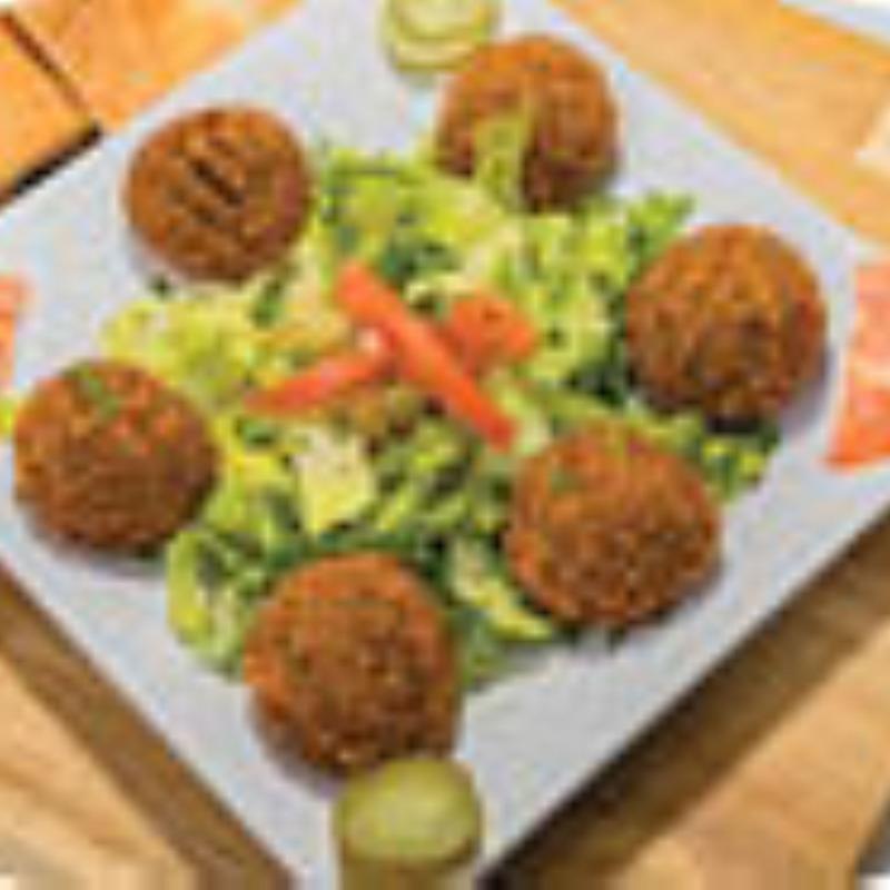 5 Sandwiches with falafel, lettuce, tomato, cucumber, onion, feta cheese, and your choice of sauce in pita bread.
